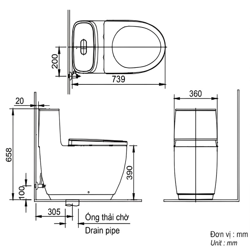 Bản vẽ kỹ thuật bồn cầu INAX AC-1052VN 1 khối nắp êm Aqua Ceramic