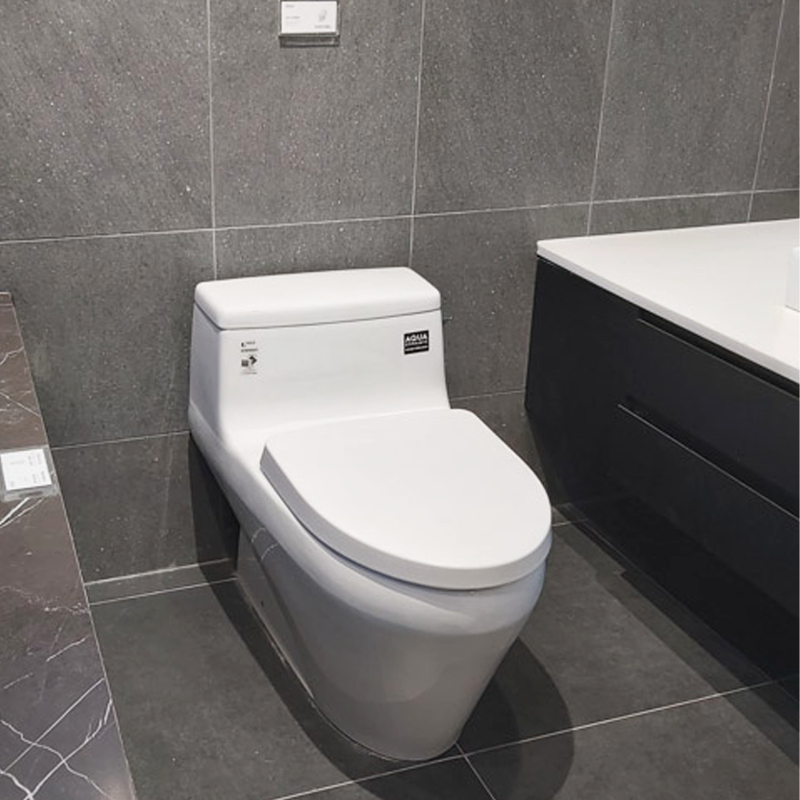 Công nghệ AQUA CERAMIC: Ngăn chặn hình thành vết ố vàng, cặn nước, giúp giảm tần suất vệ sinh và hạn chế dùng hóa chất tẩy rửa.