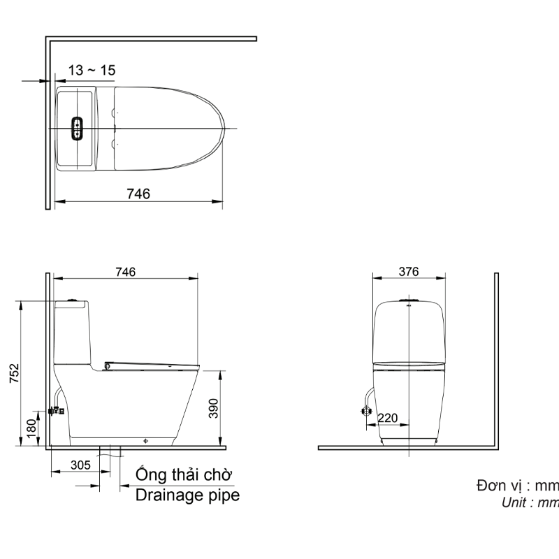 Hệ thống xả: Xả nhấn 2 mức 3/4.5L
