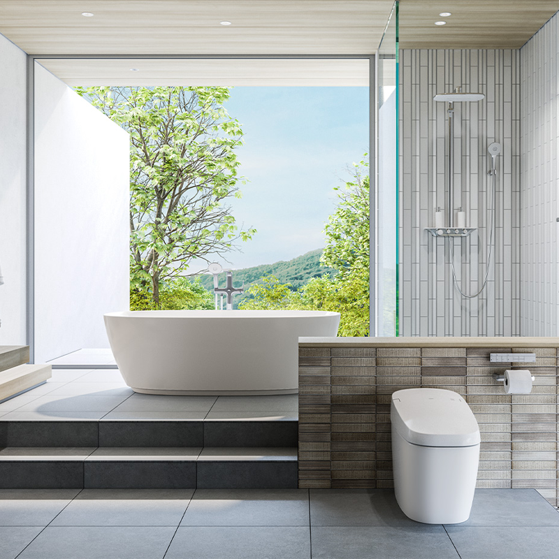 - Lắp đặt linh hoạt với kiểu dáng đặt sàn không cần ốp gạch, phù hợp với nhiều không gian