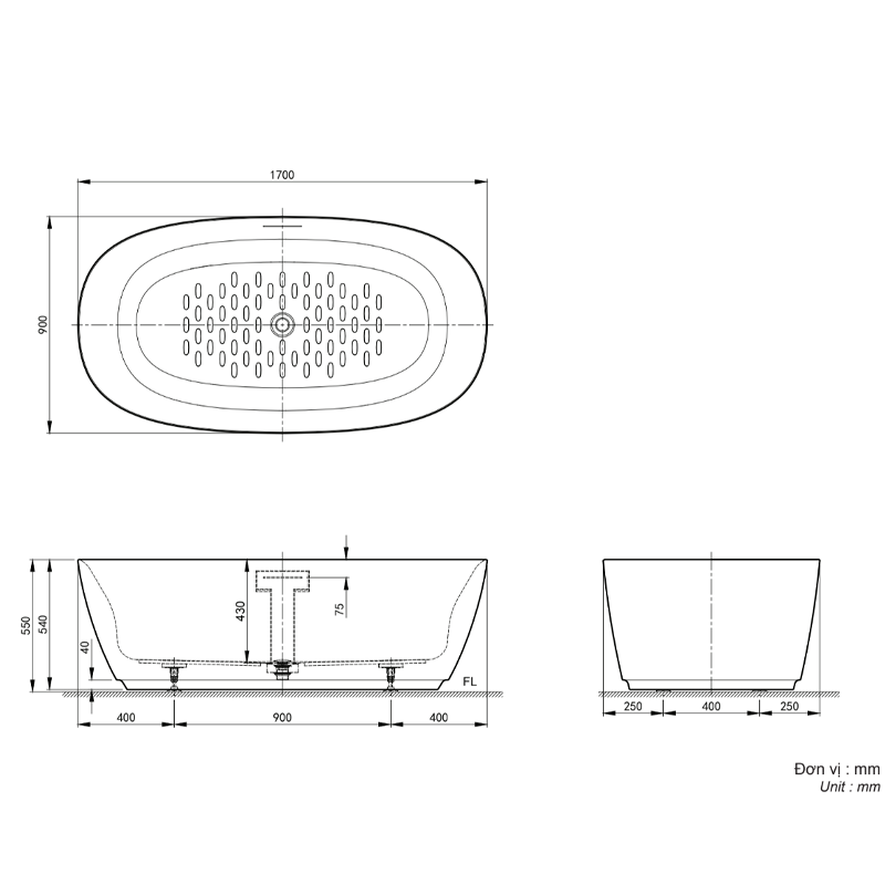 - Kích thước: 1700 x 900 x 550 mm