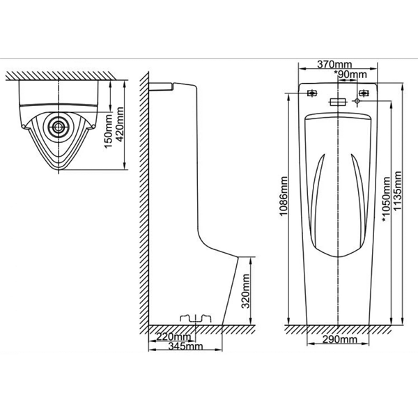 Bồn tiểu nam INAX AFU-600V cảm ứng dùng Pin (AFU-600VDC)