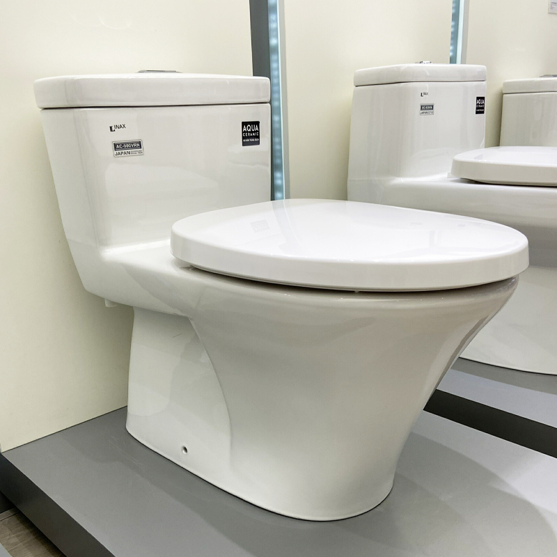 Bồn cầu 1 khối INAX AC-900VRN: Thiết kế hiện đại dễ vệ sinh, xả Siphon hút mạnh mẽ, nắp đóng êm cùng công nghệ men Aqua Ceramic siêu bền bỉ với thời gian.