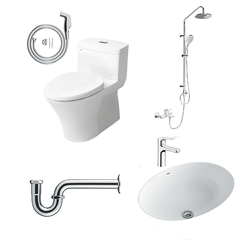 Đồng bộ thẩm mỹ: Tất cả sản phẩm trong combo đều cùng tông trắng sáng, kiểu dáng hiện đại, tạo nên sự hài hòa cho phòng tắm.