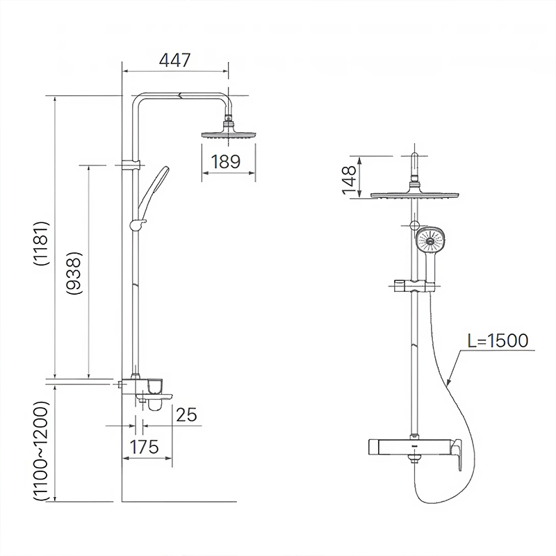 Bản vẽ kích thước vòi sen cây tắm INAX BFV-635S nóng lạnh Aqua Power