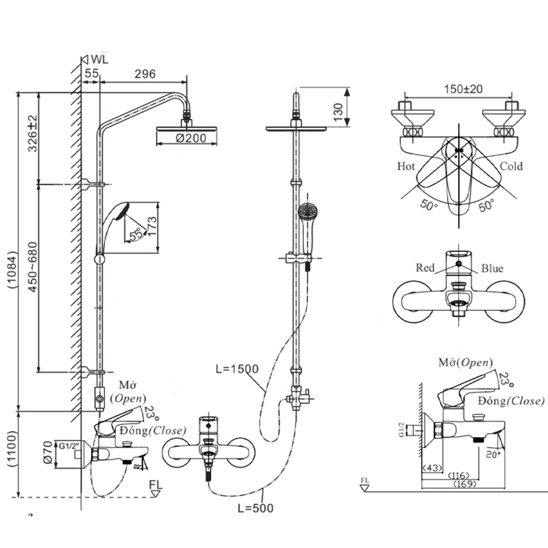 Áp lực nước: 0.05 MPa ~ 0.75 MPa