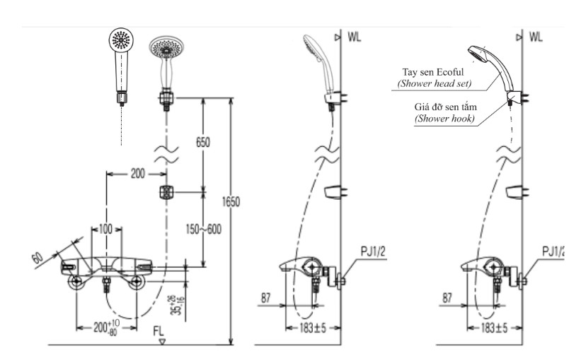 - Áp lực nước: 0.15 MPa ~ 0.75 MPa